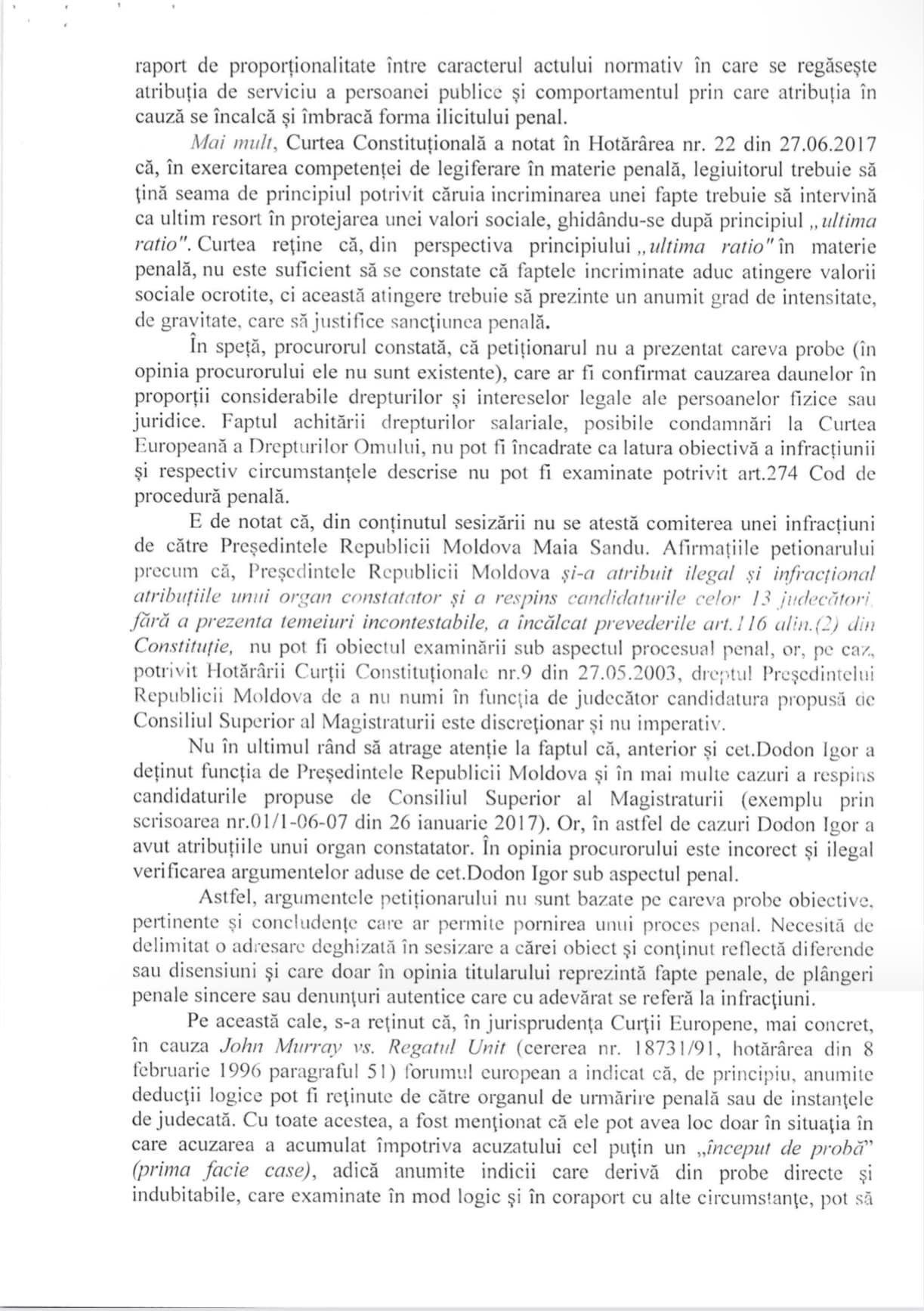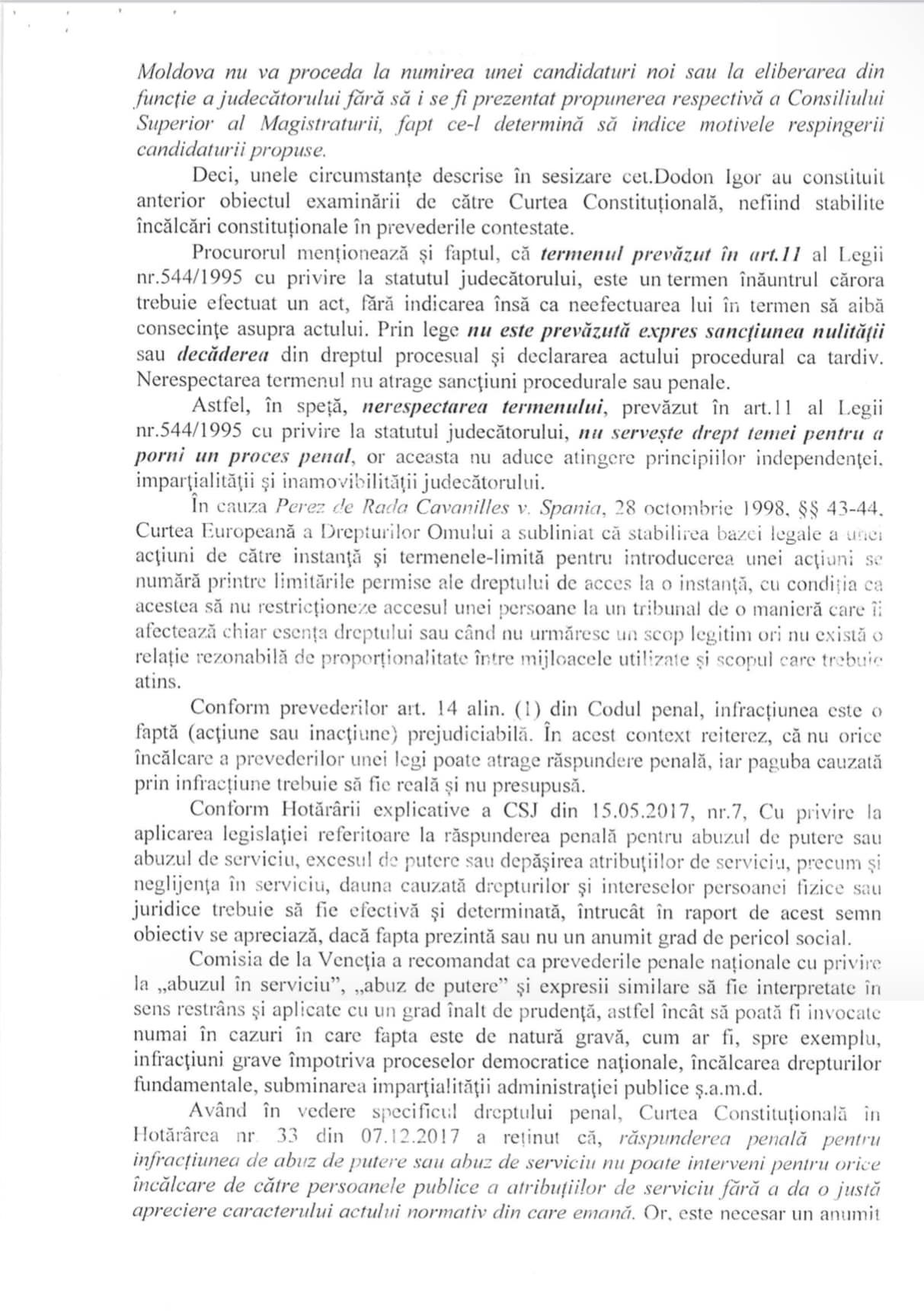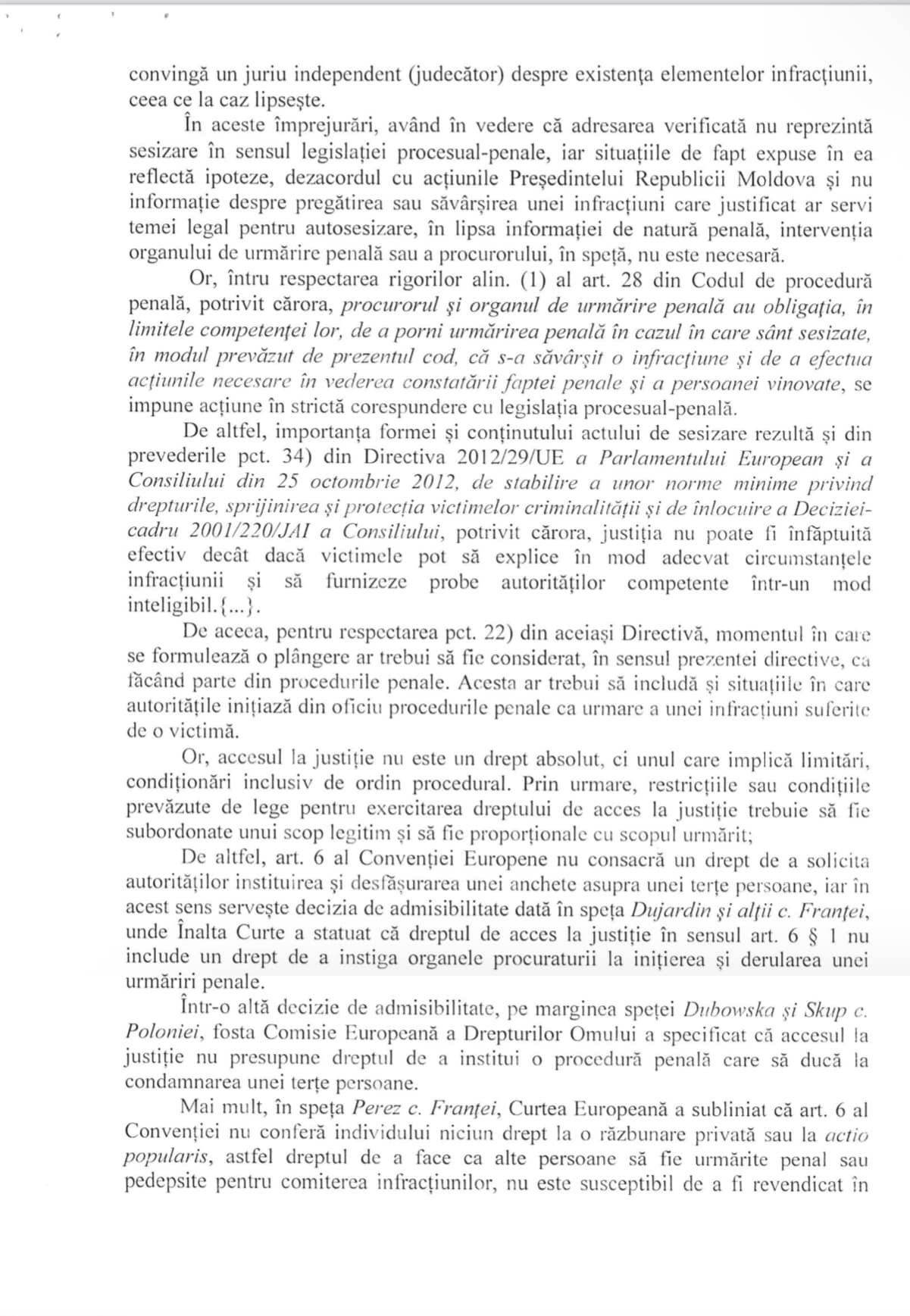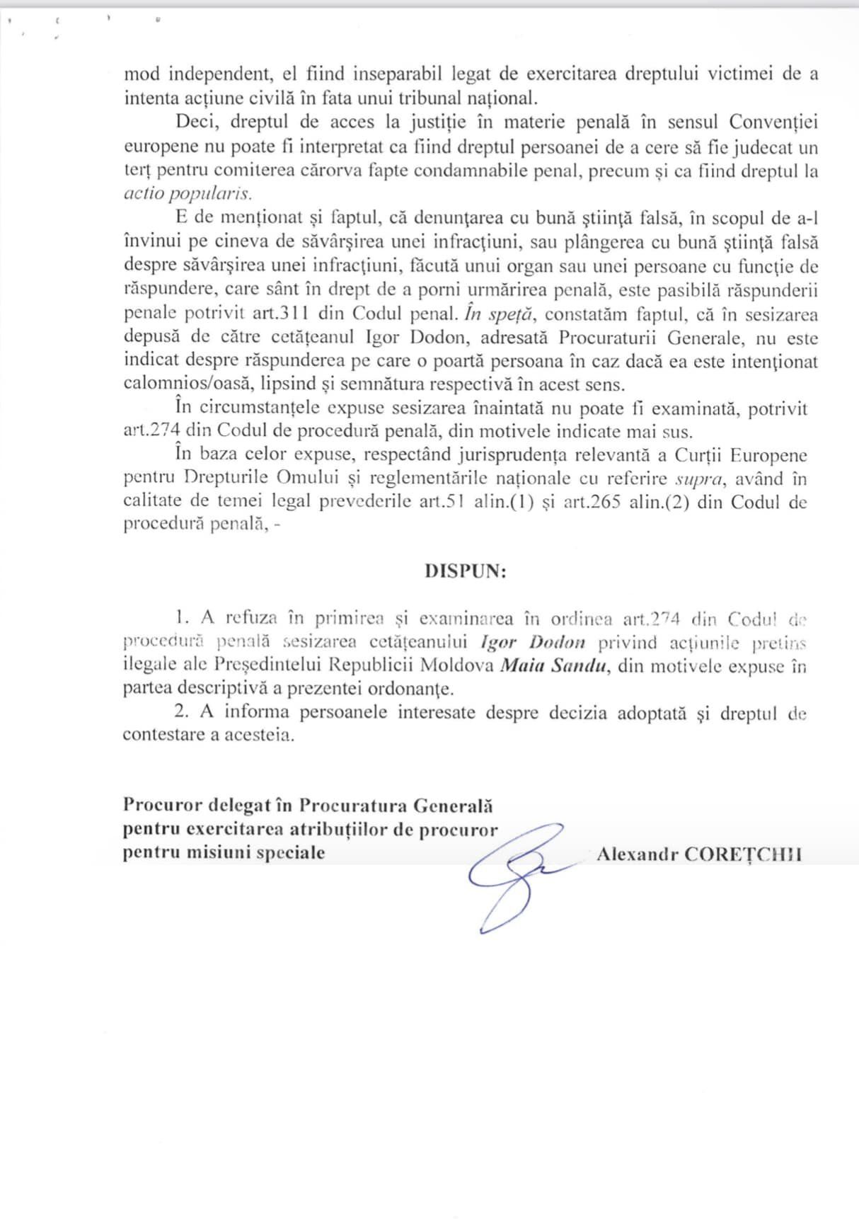 • Am fost informat că sesizarea dată a fost expediată conform competenței la Procuratura Generală, iar ulterior am primit o ordonanță prin care s-a refuzat primirea și examinarea acestei sesizări.