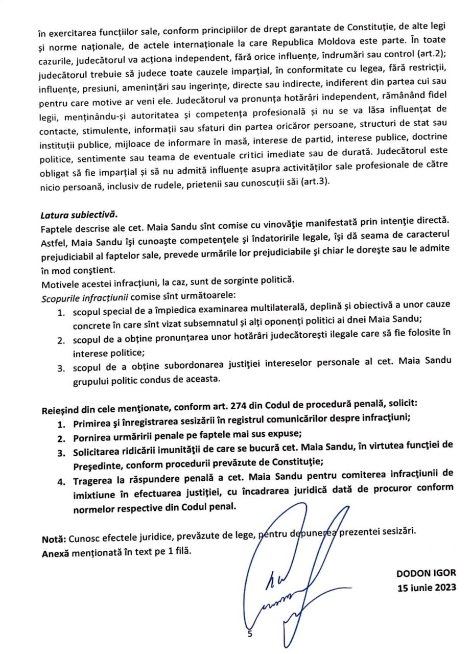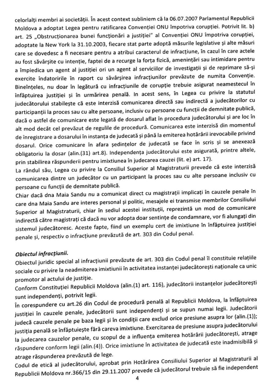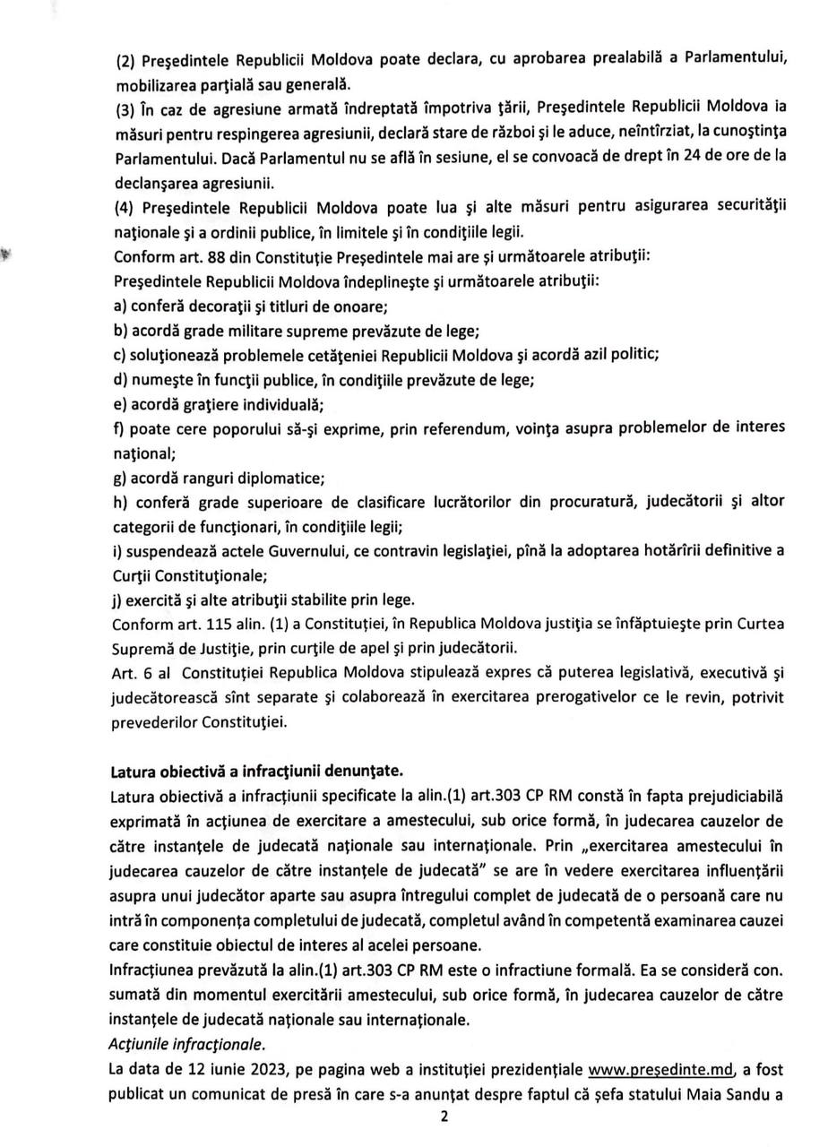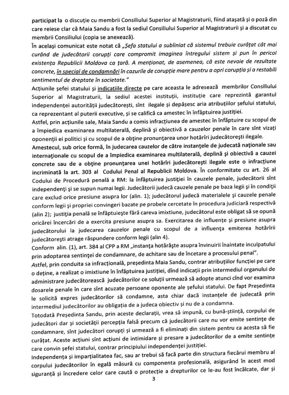 Asta dacă nu admitem că consideră declarațiile sale drept indicații directe, mai ales atunci când de șeful statului depinde numirea tuturor judecătorilor, mai nou și a celor de la Curtea Supremă de Justiție, unde se examinează cauza penală în care sunt acuzat și care a fost pornită tot la indicația Maiei Sandu.