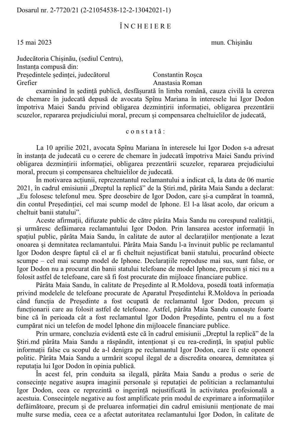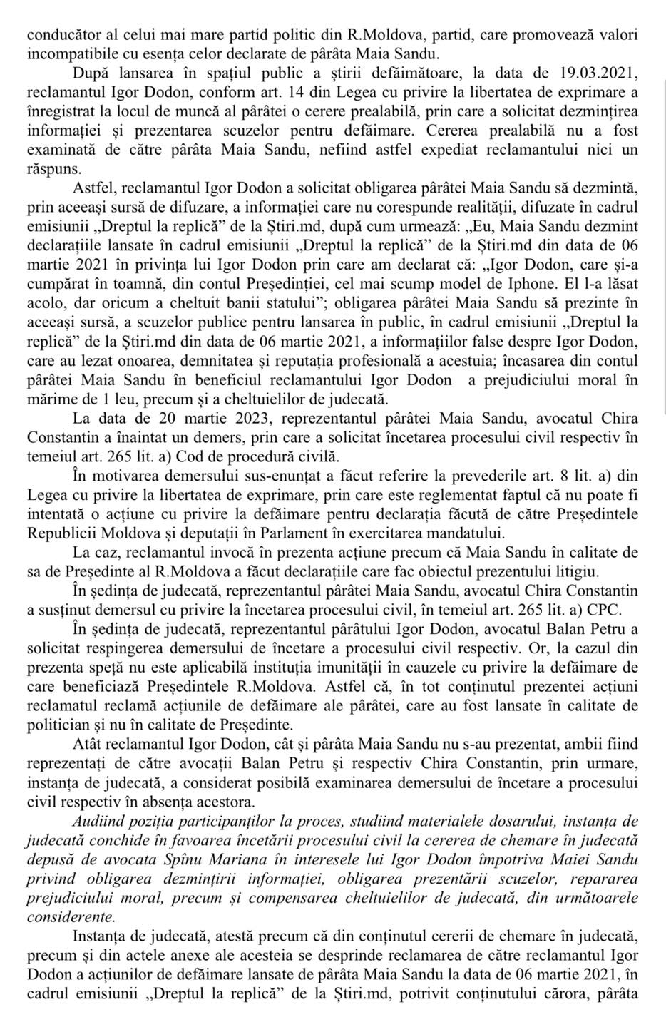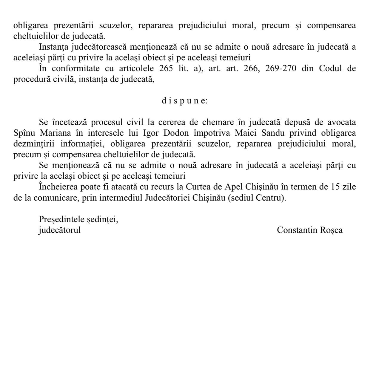 În sfîrșit eforturile Maiei Sandu de a „reforma” justiția au dat roade! Ieri instanța de judecată a incetat procesul intentat de mine impotriva Maiei Sandu privind obligarea dezmințirii informației, obligarea prezentării scuzelor, repararea prejudiciului moral.