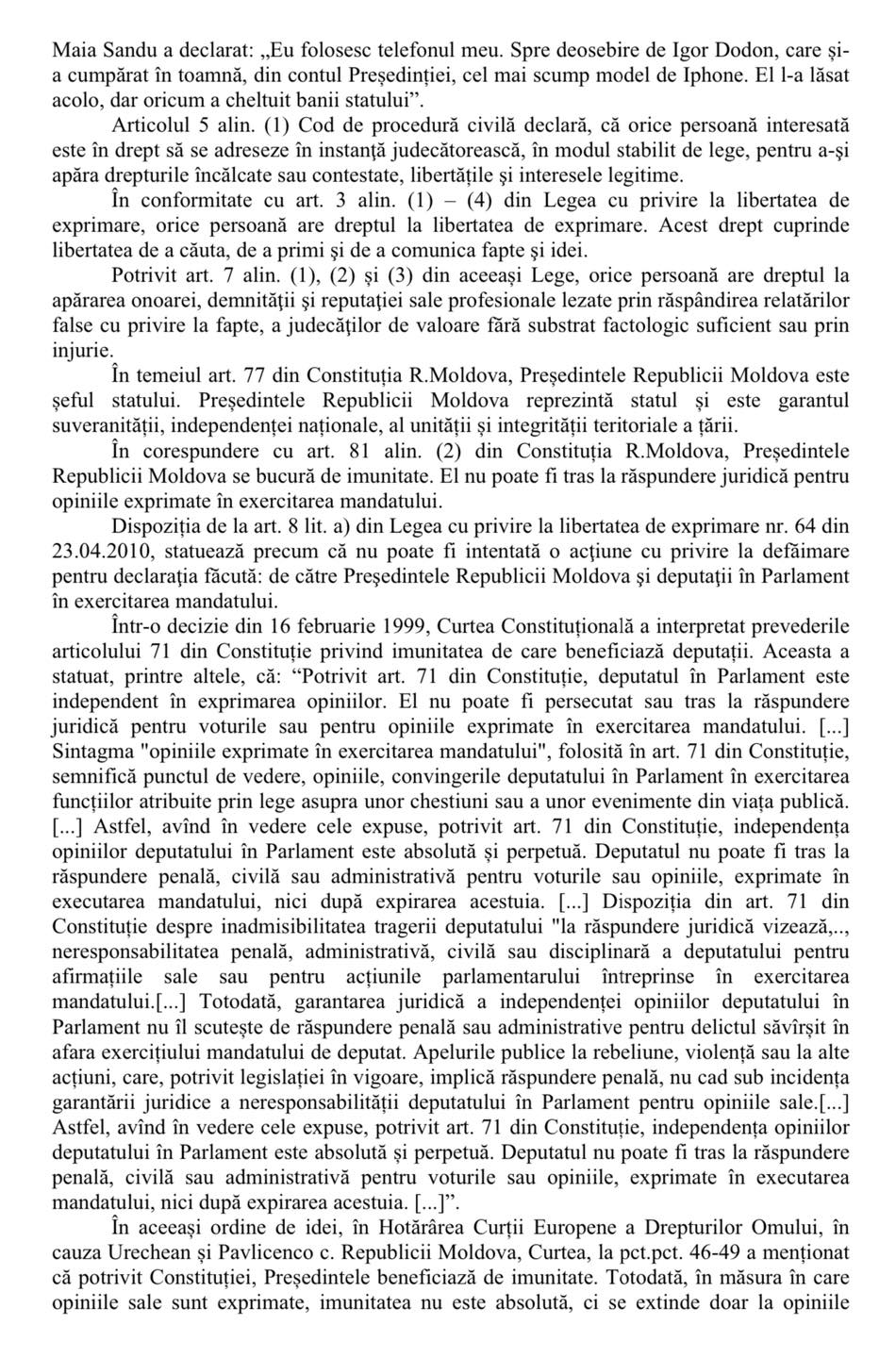 Constituția țării garantează imunitatea șefului statului întru exercitarea mandatului, întru realizarea funcțiilor și atribuțiilor și nicidecum ca umbrelă pentru a putea debita aberații rușinoase și minciuni crase.