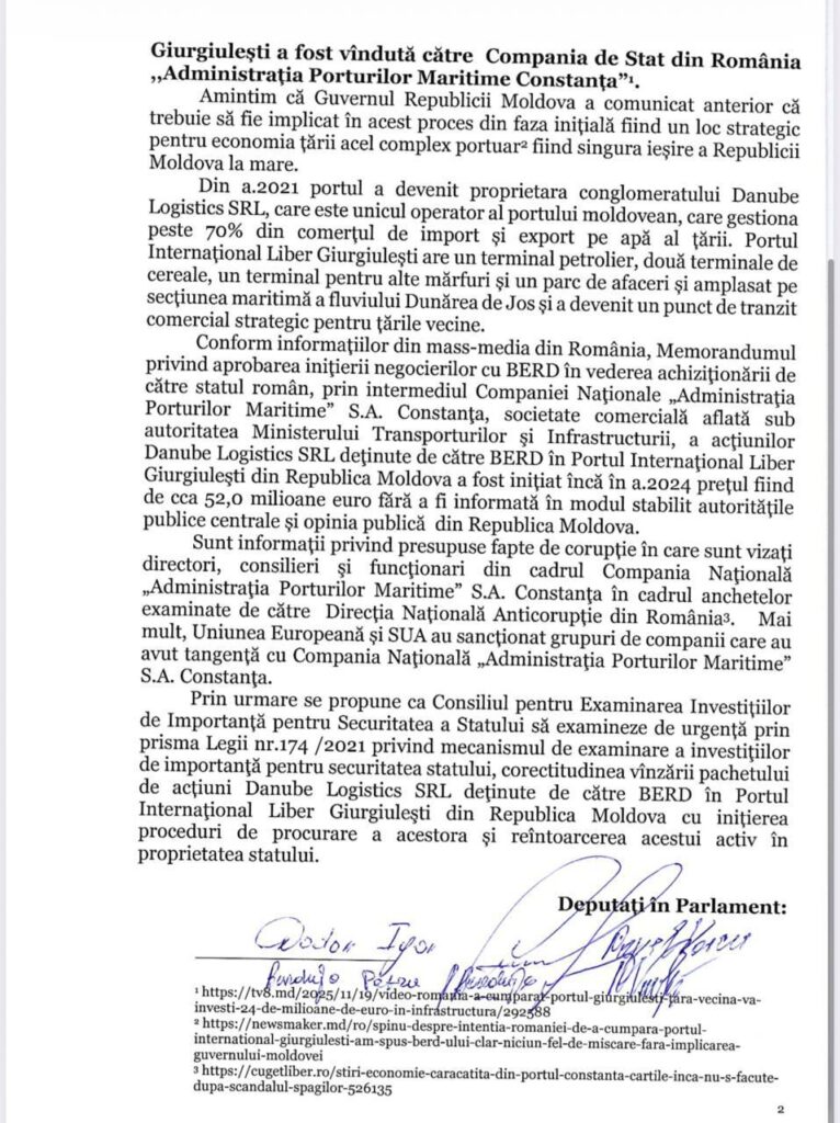 Portul Giurgiulești nu este un simplu activ economic. Este un instrument al suveranității statului, un pilon al independenței economice și un element-cheie al viitorului Republicii Moldova. Statul este obligat să exercite controlul asupra acestui obiectiv strategic. Fără compromisuri.