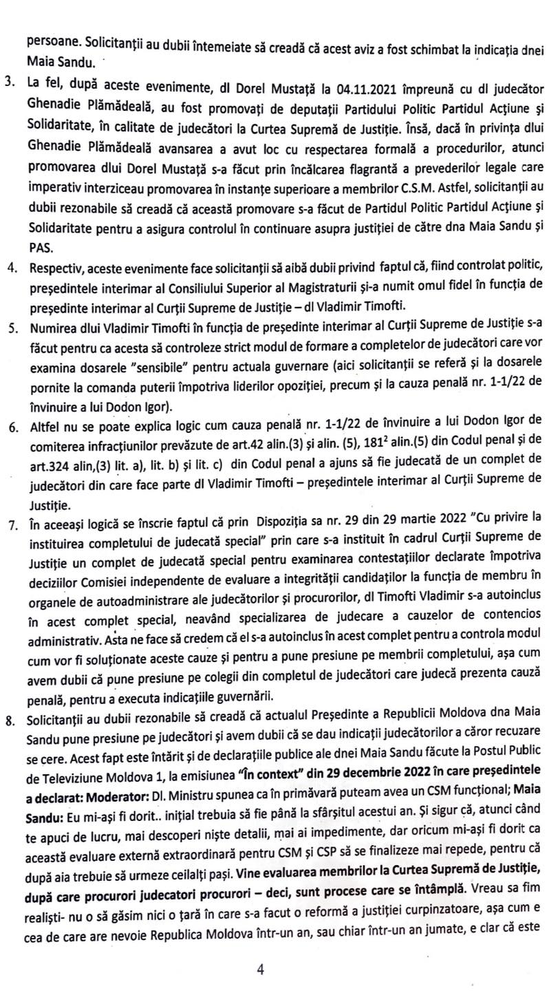 Эти сомнительные движения никак не придают уверенности в отправлении правосудия, особенно когда я замечаю, что тот же судья Тимофти курирует все коллегии судей, которые рассматривают дела, представляющие интерес для нынешней власти(политические), т.е. в том числе моё дело, и сам себя включает в состав коллегий, рассматривающих законность решений комиссии по превентингу.