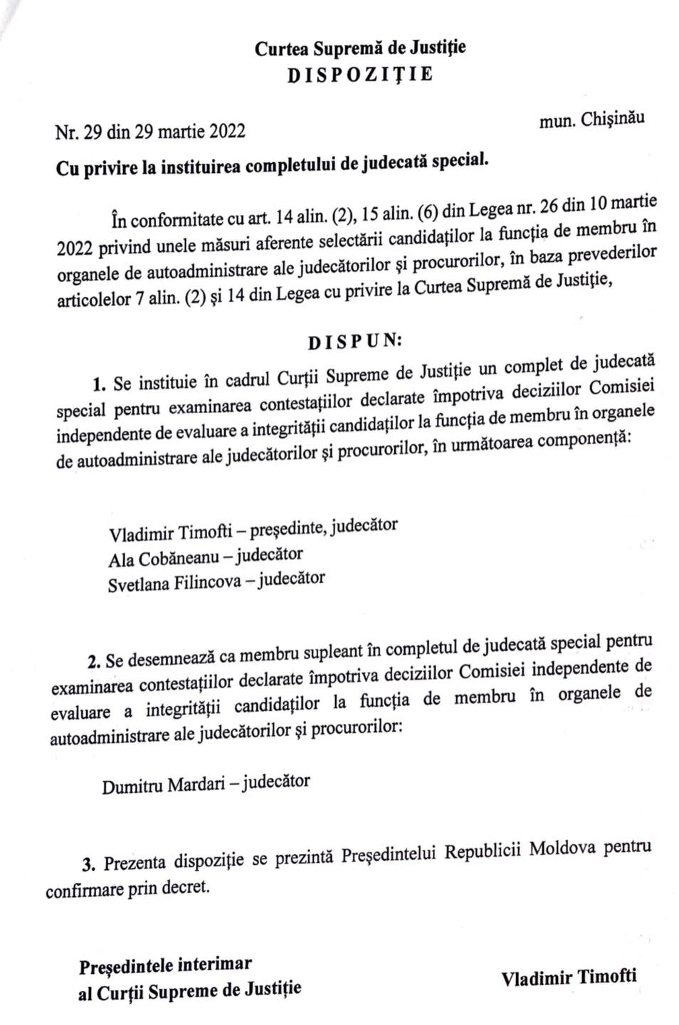 Другой исполняющий обязанности председателя, на сей раз Высшего совета магистратуры (ВСМ), Дорел Мустяцэ, верный клиент нынешней власти, немедленно назначил на эту должность господина Владимира Тимофти. После этой полезной услуги, оказанной властям, Мустяцэ был назначен судьёй ВСП, хотя закон прямо запрещает это.