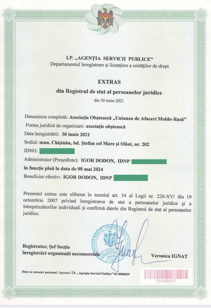 Я принял предложение возглавить общественную организацию «Молдавско-Российский Деловой союз», деятельность которой ориентирована на развитие отношений между нашей страной и Российской Федерацией, привлечение российских инвестиций в молдавскую экономику, создание таким образом новых рабочих мест для наших граждан. Это работа, которую я продолжу в интересах Молдовы и людей нашей страны.