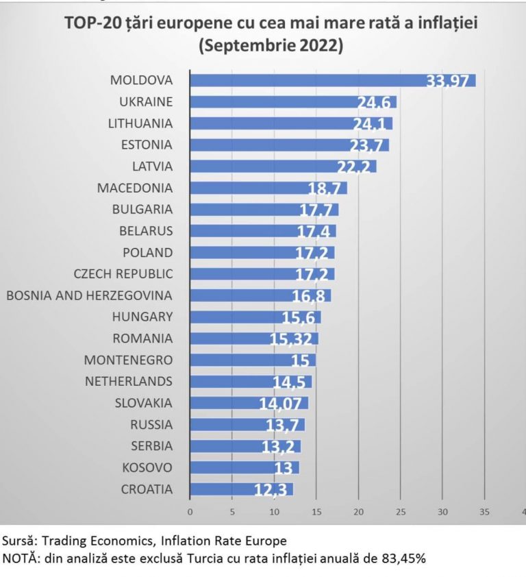 Молдова продолжает «доминировать» в ТОП-е европейских стран с самой высокой инфляцией Читать больше 11/10/2022
